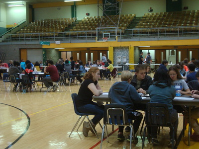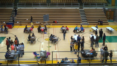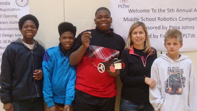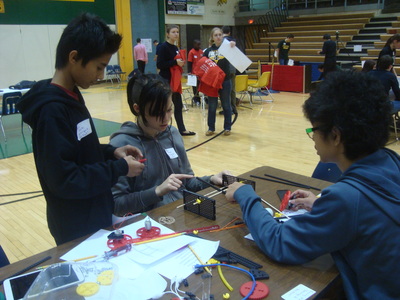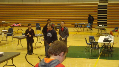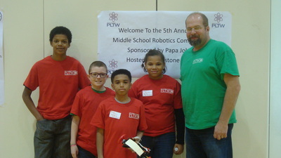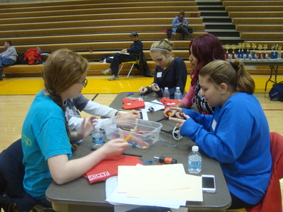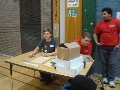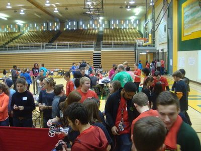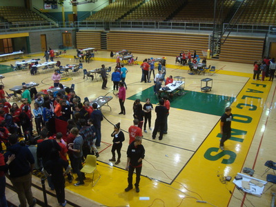 The students of Project Lead the Way are recruited every year by Mr. Spak to run what has grown into a huge annual event at the high school, from setting up the gym early in the morning, to posing as team mentors, manning troubleshooting tables, passing out supplies, greeting teachers and parents, registering each student that comes to compete, commentating and refereeing matches, announcing results, running the projection screen, taking pictures, presenting awards and finally cleaning up after it all. With eight of Akron Public School's nine middle schools in attendance, running this event requires all hands on deck.